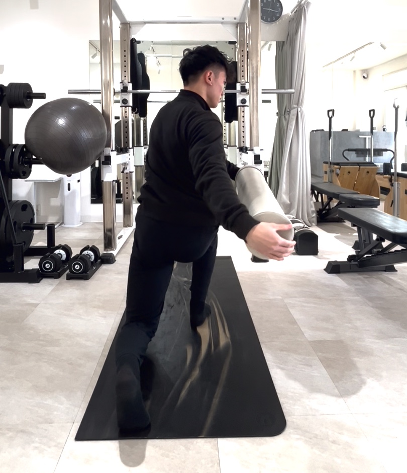 - 内転筋の意識: 軸足(前脚)の内ももを意識して安定感を保つ。