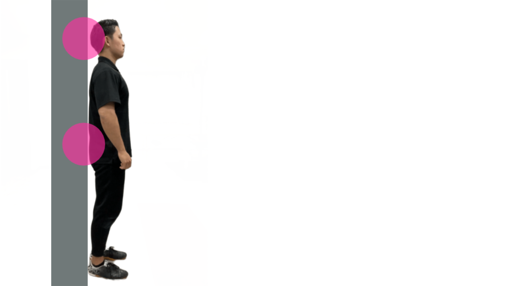 猫背であるかどうかのチェックをする方法は、壁を用いた方法が簡単で分かりやすい手法です。