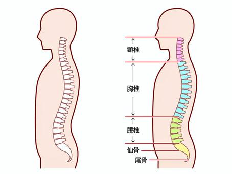 私たち人の背骨は、もともと自然なS字カーブを描いており、上から頸椎(けいつい)胸椎(きょうつい)腰椎(ようつい)となっています。